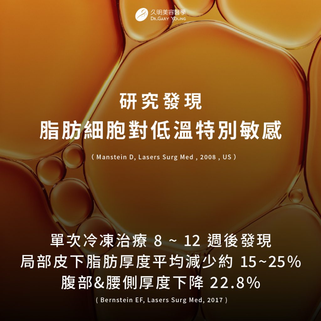 其實從最早的動物與組織學研究 ( Manstein D, Lasers Surg Med, 2008,美國 ) 結果就發現:脂肪細胞對低溫特別敏感。