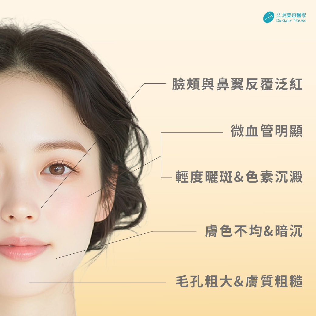改善泛紅、紅血絲治療、膚色不均、毛孔粗大、提亮暗沉,以上都是許多愛美民眾最在意、也最常反覆搜尋的重點關鍵字!而台灣夏季高溫潮濕,臉頰泛紅、鼻翼血管、毛孔與局部膚色不均的情況又更容易被放大。