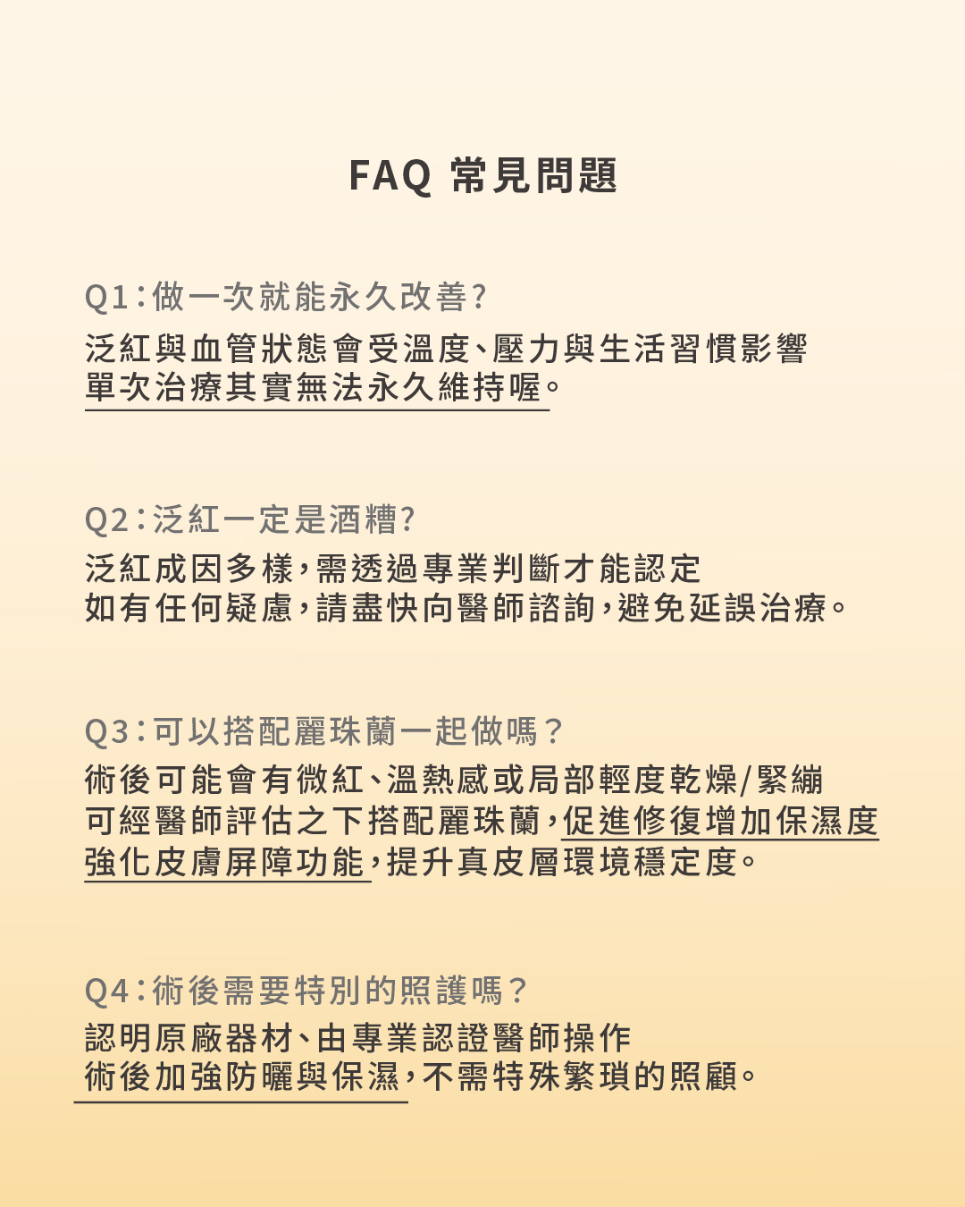 泛紅與血管狀態會受溫度、壓力與生活習慣影響,單次治療其實無法永久維持喔。