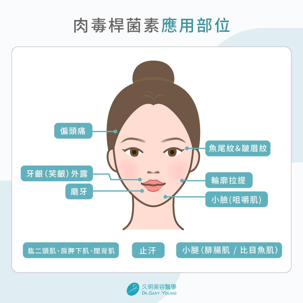 從臨床角度來看,肉毒桿菌素是一項橫跨「動態調控」、「結構修飾」與「醫療用途」的治療工具,它能處理表情紋、肌肉肥厚、臉型比例,也可應用於止汗、磨牙、偏頭痛與局部肌肉張力管理。實際療程規劃會依解剖結構、表情動態與生活需求調整。