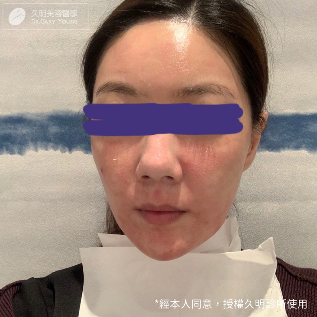 雷射後的稚嫩肌膚正要重啟恢復,看體質有些人會紅個3天5天不等,這個期間除了防曬+保濕、也不能美白、去角質、使用含酸類的保養品。