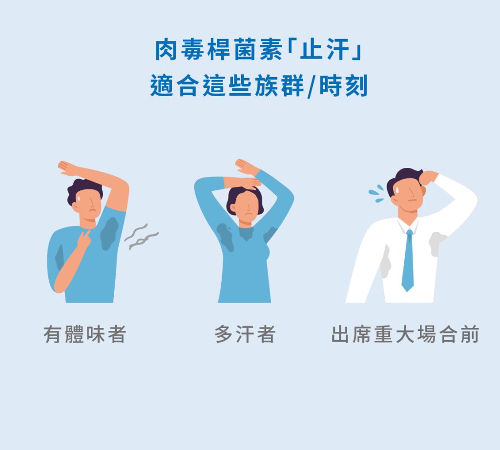 每到夏天,腋下除了黏、濕、不舒服,還容易有味道,甚至不敢穿淺色衣服了!這時候「肉毒止汗」就是方便又省力的解法。