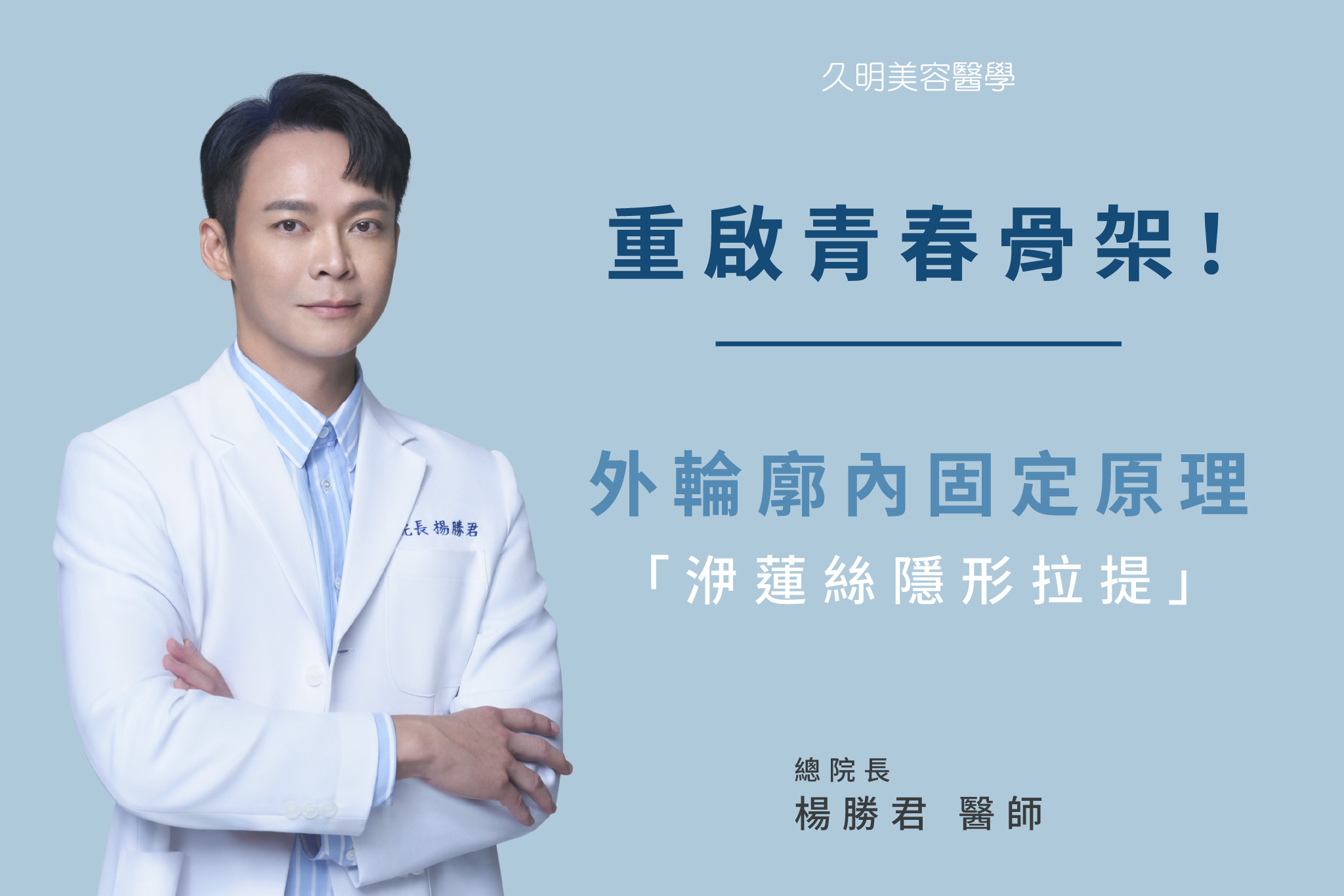 在我專業的技術下,幫助大家從裡而外找回青春的元素,從根本建立年輕自信,向坍塌、凹陷說掰掰,再也不用「聞老色變」囉~