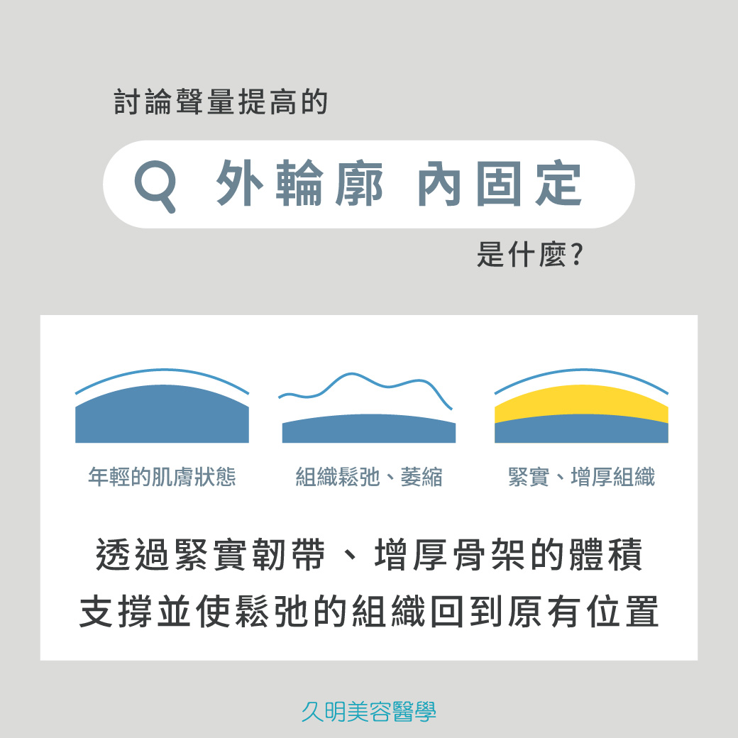 如果想要更長遠、持久、有效的恢復以往的年輕光采,就要想辦法有效增厚骨架的體積才行;我們無法改變時間,但現在,我們已經可以用『外輪廓、內固定』注射技法,重新搭建起青春的骨架!