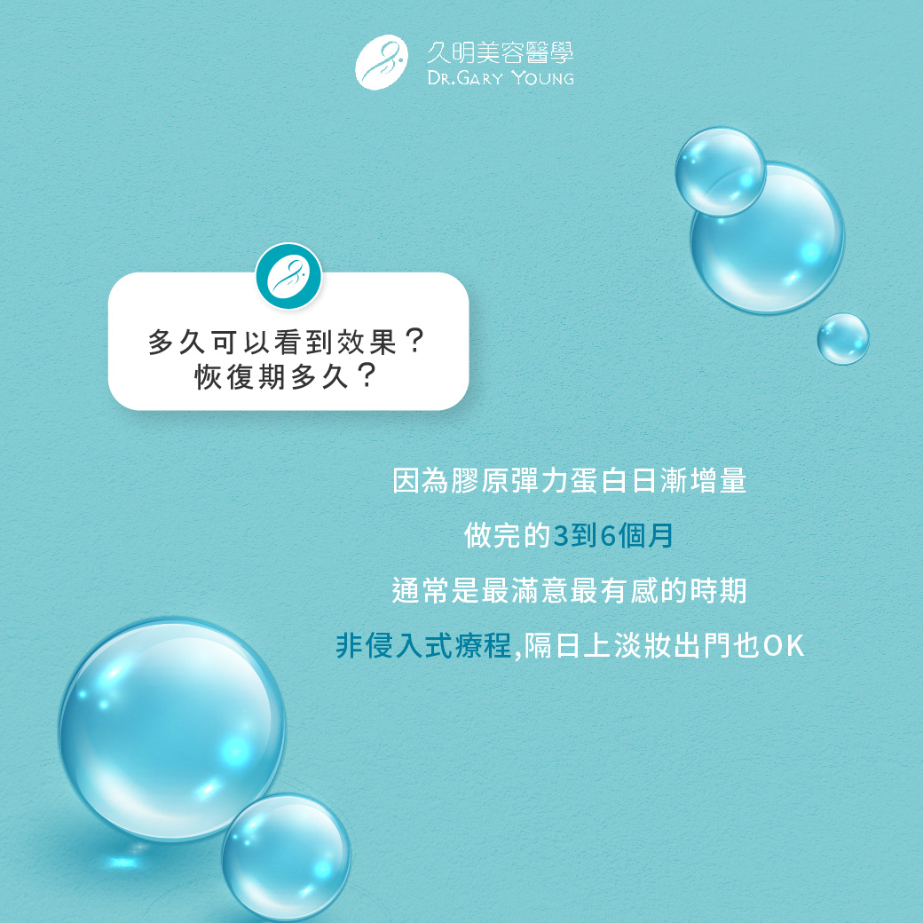 因為膠原彈力蛋白日漸增量,做完的3到6個月*通常是最滿意最有感的時期👏 也因為它不是手術,隔日上淡妝出門約會,也粉OK*
