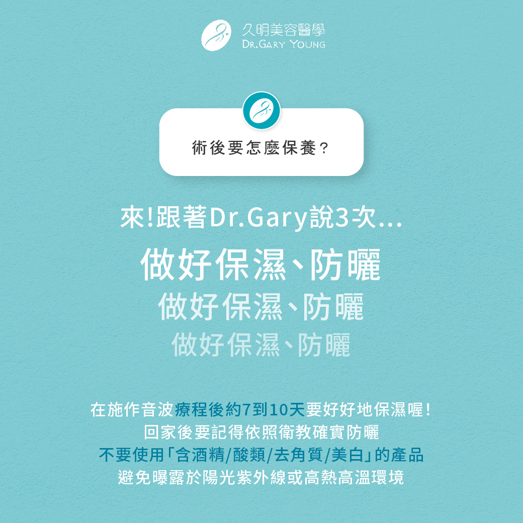 不過雖然幾乎是零傷口,但畢竟是超音波能量正在作用中,還是要給皮膚重新啟動修復的時間,在打完音波後約7到10天要好好地保濕喔!