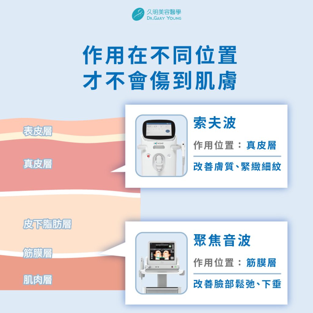 聚焦式音波 ( 例如美國音波 ) 與索夫波,它們專攻的皮膚層次不一樣喔!