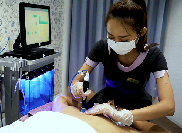 一次療程大約25到35分鐘左右,我是選做最經典的美背課,目前為止已經做了2、3回,真的讓我的上背部膚況變得穩定,也不會像之前一樣狂長痘痘又紅紅一塊一塊的!現在我已經可以更放心的穿上寬領口的造型,也因為不再被布料與汗液包覆,減低了刺激,長痘的情況又控制得更好。