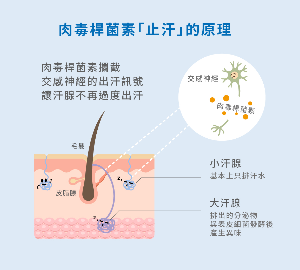 每到夏天,腋下除了黏、濕、不舒服,還容易有味道,甚至不敢穿淺色衣服了!這時候「肉毒止汗」就是方便又省力的解法。