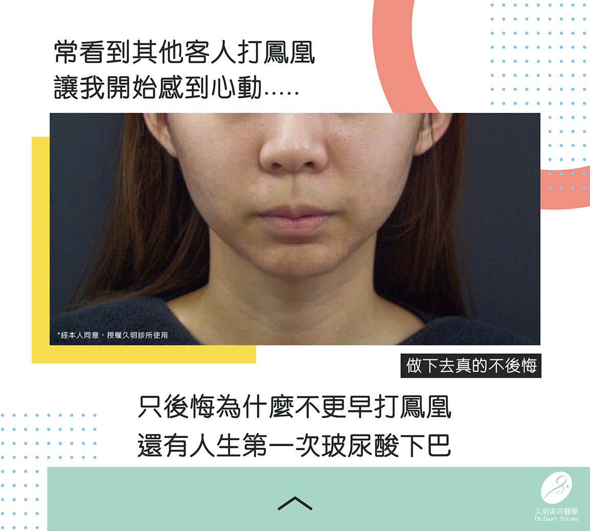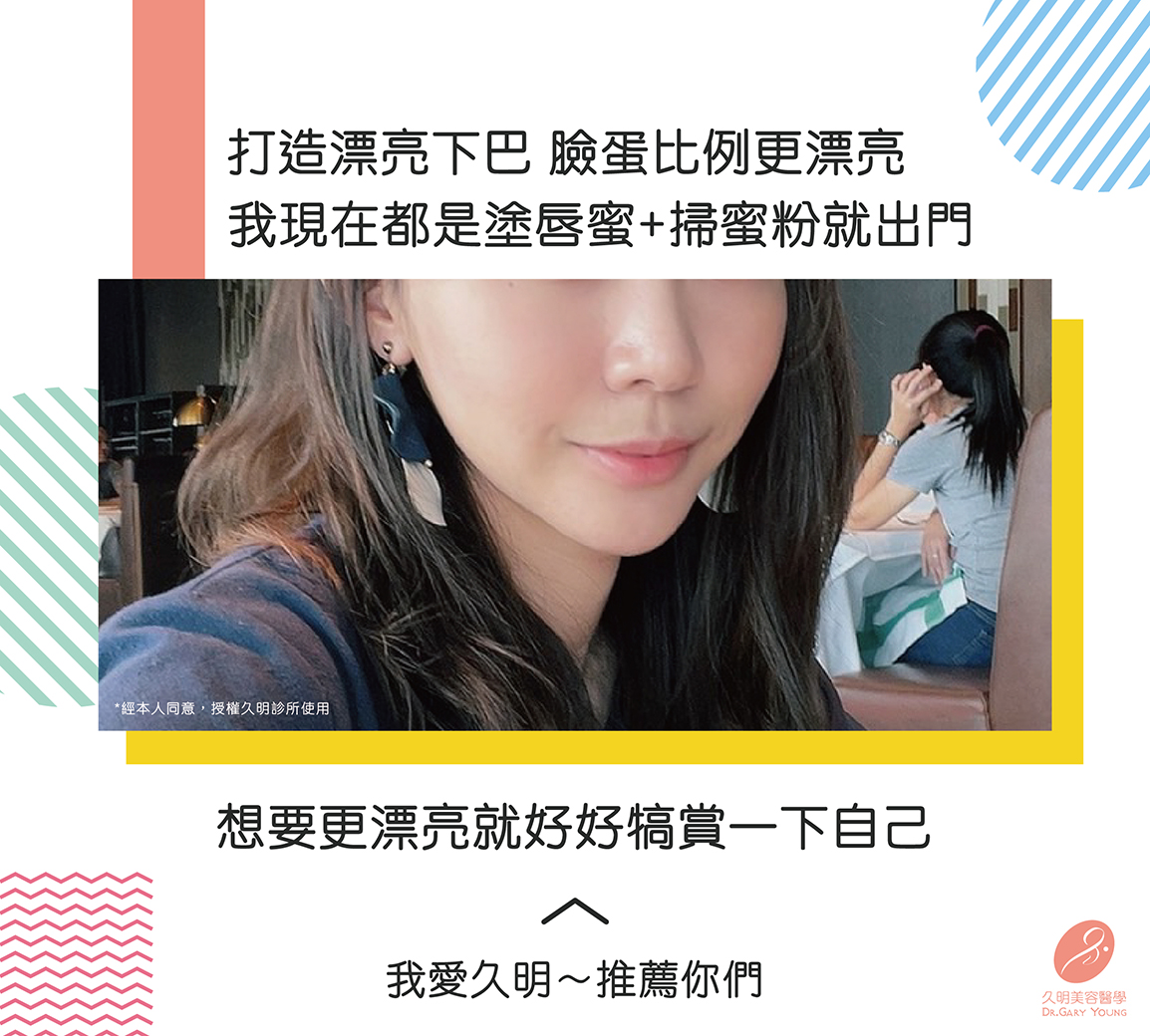 另一個就是短下巴星人都可以評估嘗試的「玻尿酸」豐下巴、一旦下巴的比例跳出來、臉蛋的精緻度會加分很多,無論是長髮還是短髮造型,隨便怎樣都好看✨ ,真的好愛久明~ 如果問我台北醫美診所推薦哪一家,那一定只有久明醫美 Dr.GaryYoung