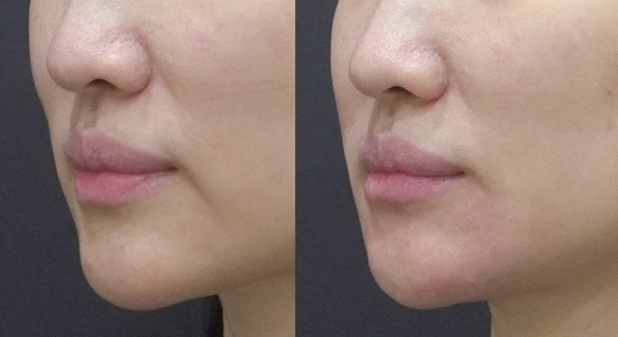 客人已經觀察自己的臉一陣子了,總是覺得嘴角兩旁有凸出贅肉;他先在別家做了索夫波,但感覺沒有改善,而後來到我的門診求助。