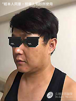 這張照片是「倍克脂」術後一個月所拍攝,楊榮麗醫師為我使用了3瓶倍克脂治療劑;每次的回診都享受了迅速又完善的服務,期間我全程遵照醫師叮囑,配合專屬諮詢師的熱心叮嚀、術後關心,很開心能有這樣的雙下巴治療效果。