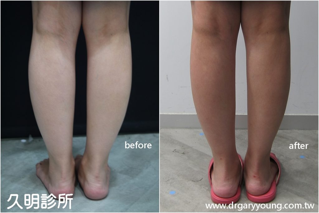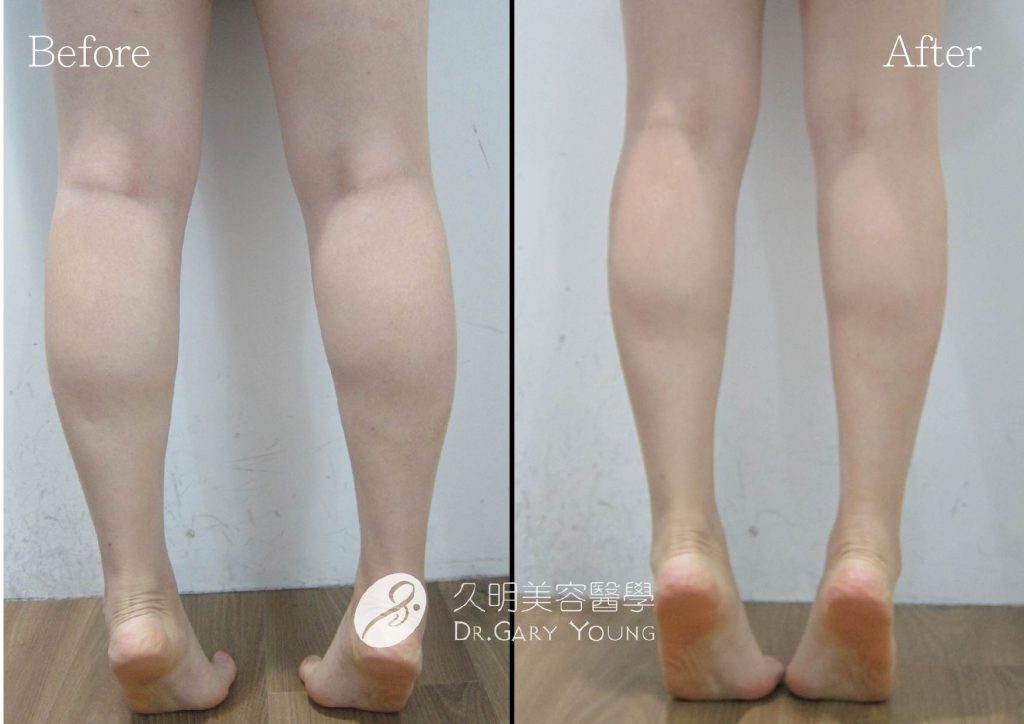 女性朋友常穿高跟鞋,或過度的使用小腿肌,例如需要腿部肌肉爆發施力的運動,跳舞等,小腿肌肉日漸變粗,而肉毒桿菌素注射後,可以放鬆膨脹緊繃的「腓腸肌」,術後外觀可感覺小腿肌肉形狀變得較修長。