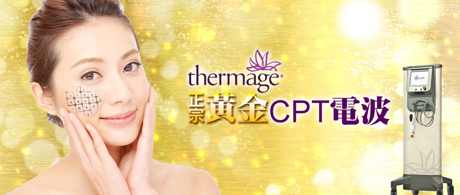 Thermage熱世紀 CPT康頗泰電波 (俗稱:CPT黃金電波) ,是使用Total Tip探頭(橘色探頭),經衛福部核准,可達到非侵入式細紋及皺紋治療。運用於嬰兒肥、嘴邊肉、橘皮凹凸不平、刺激膠原蛋白增生、下垂鬆弛、靜態皺紋、肥胖紋、妊娠紋、人魚線馬甲線雕塑。